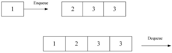 As shown in Figure 4, the queue currently contains one data packet with priority 2 and two data packets with priority 3. At this moment, when a data packet with priority 1 arrives, it interrupts the queue and is prioritized for processing.