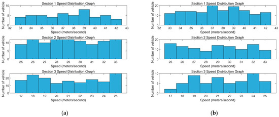 Scenario 1 and 2 Speed Distribution Graph. (a) Scenario 1 and (b) scenario 2.