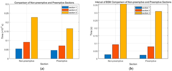 Comparison of Non-preemptive and Preemptive Sections. (a) Delay and (b) interval of BSM.