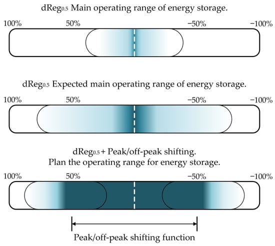 Figure 4. E-dReg is envisioned to be the optimal operational tool for scheduling auxiliary services in completing the energy transition in the future. Compared to dReg, E-dReg not only assists in rapidly adjusting the power grid system frequency but also adds the functionality of peak-to-off-peak energy transfer. By storing excess electrical energy in energy storage systems and releasing it during peak demand moments, E-dReg aids in regulating peak and off-peak electricity demand effectively, enhancing the resilience of the grid and alleviating the pressure on Taipower’s supply during the nighttime second peak.