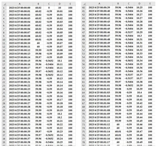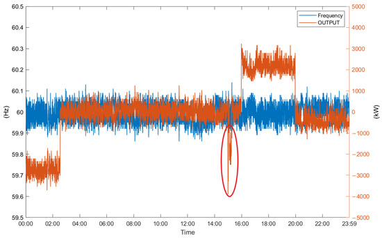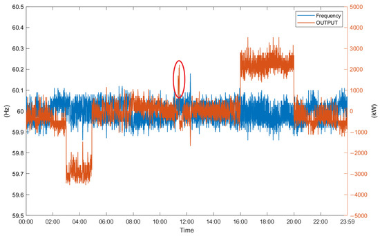 ) every second for the entire day. The archived data include the frequency measurements, output power ratio, and other related electrical parameters collected throughout the testing period. The schematic diagram of the archived raw data is shown in