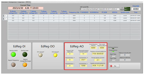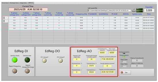 Figure 18 illustrate the human–machine interface (HMI) of the E-dReg controller in the EMS. From these two figures, it is evident that when the E-dReg controller receives the emergency dispatch command simulated by the emulator, the interface allows monitoring of the capacity to be executed and the commencement time of the execution. In