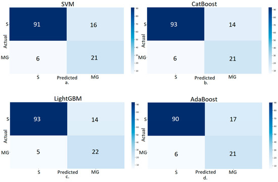 For the purposes of the current study, four different classification models, each based on a different ML algorithm, were tested. Support Vector Machine (SVM), Categorical Boosting machine (CatBoost), Light Gradient-Boosting machine (LightGBM), and Adaptive Boosting machine (AdaBoost) were the well-documented ML algorithms that were employed in the scope of this work. This range of algorithms has been widely used by the research community [