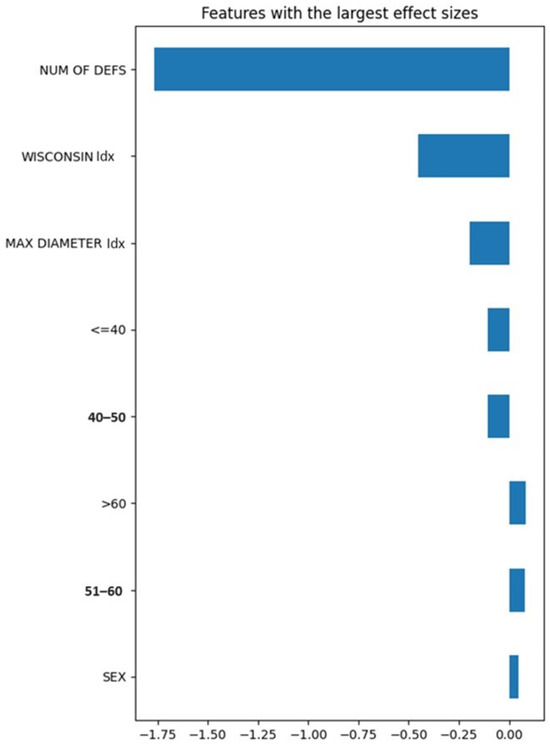 Figure 4, respectively). The results suggest that the number of deficiencies is the most impactful feature, followed by the Wisconsin index and the maximum diameter of the deficiency. These findings are consistent with the known risk factors for PHPT, as documented in the medical literature [