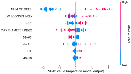 The final step in the methodology of this study is the explanation of the optimal prediction model. This analysis is of critical importance for all black-box prediction models, as it offers the users of such systems valuable insight into the decision-making process of the AI. This is especially true with AI systems that are being deployed in medical applications. Specifically, in the healthcare field, ML systems that lack explainability may not be perceived as trustworthy by patients or medical personnel [