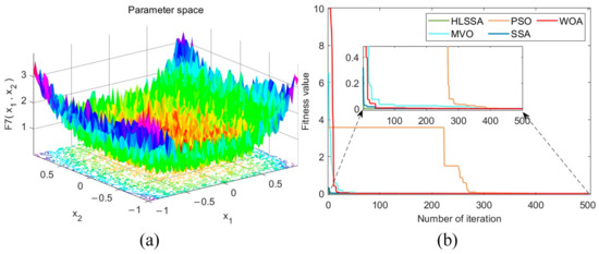 As shown in Figure 17 and Table 8, the MVO and PSO exhibited relatively poorer convergence accuracy, while the WOA, SSA, and HLSSA yielded the same optimization results. However, the HLSSA demonstrated a faster convergence speed, and it had the lowest initial fitness value, indicating that the HLSSA provides a higher quality initial solution.