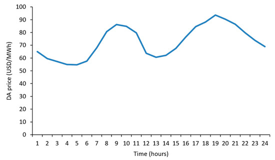 The DA price forecast for the CVPP test case.