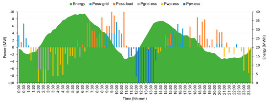 | ESS energy at the end of the day (t = 96) in scenario S (MWh). | |