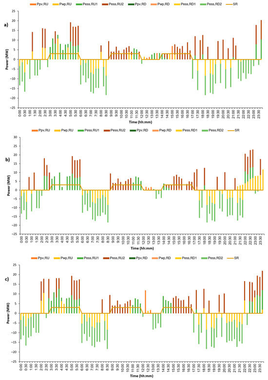Similarly, depending on each situation in Table 1, the amount of downward reserve provided by ESS can be , or both, and limited by Equations (9)–(12).