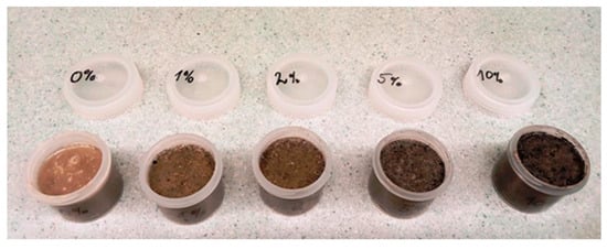 Concrete test specimens, incorporating varying amounts of rCB into the cement mortar, were produced (depicted in Figure 4). Carbon black proves suitable for application as a pigment in cement and lime-based mortars, construction mixtures, paints, and elements with a concrete binder (paving stones, blocks, tiles, etc.). The product can withstand alkaline environments well but is unsuitable for acidic settings. The addition of up to 10% pigment to the mixture weight has no significant impact on the final product’s mechanical properties.