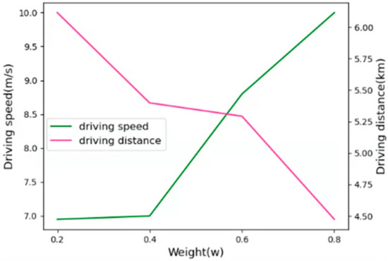 for the driving speed and distance, we evaluated the performance by varying the weight