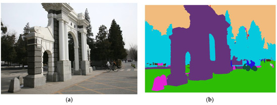 We utilized the Cityscapes dataset as the training dataset for semantic training (Table 1). Cityscapes is an open-source dataset featuring street scenes from 50 different cities, with pixel-level and instance-level annotations. The dataset comprises 5000 finely annotated images and 20,000 coarsely annotated images [30]. It categorizes urban scenes into 8 groups and 30 categories. Owing to its detailed classification, accurate annotations, and ample data volume, this dataset was the preferred choice for our semantic training. The urban semantic recognition capabilities acquired through training with this dataset served as the foundation for our semantic 3D reconstruction of complex urban scenes.