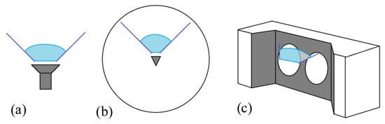As the nature of this application comprises a camera, a virtual camera and a HMD, it is important to distinguish between three different types of FoV present in the system. The FoV of the cameras that are projected into the system, the FoV of the virtual camera that is fed into the VR HMD, and the inherent FoV of the headset. A visual representation can be seen in Figure 1. The last link in this pipeline, the FoV of the headset, was the one being measured. The changing the FoV of the virtual camera has already been thoroughly researched [,]. In case of the simulated testing setup, the first camera in the pipeline is a simulated camera. Apart from this difference, the two systems were designed to be as similar as possible.