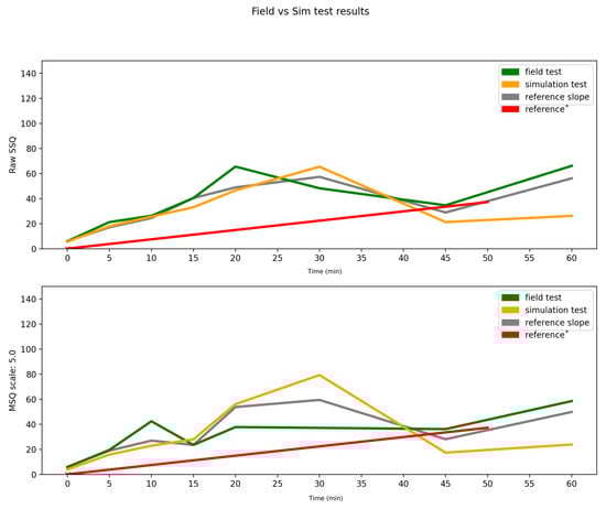 Motion sickness is an uncomfortable phenomenon experienced by individuals in response to Virtual Reality (VR) environments or motion stimuli. This phenomenon necessitates reliable measurement methods to assess its impact. There are ways to accurately measure motion sickness in users. A very objective method is to measure body sway amplitude, blood pressure, body temperature, sweating, change of skin conductivity, heart rate, EGG, and EEG, as these can indicate motion sickness []. These measurement methods are great for obtaining very accurate Motion Sickness (MS) readings for a single participant but the setup is not very portable and may not provide accurate results on in-field setups. As an alternative method, subjective user-based questionnaire scores have widely been used and been proven to be reliable []. Two significant instruments employed in this context are the Simulator Sickness Questionnaire (SSQ) and the Motion Sickness Susceptibility Questionnaire (MSQ) [].