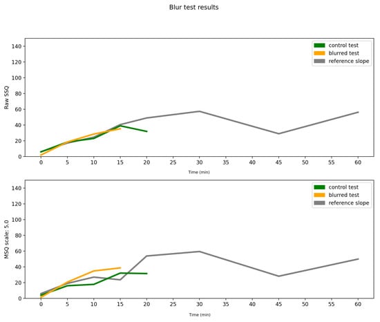 The raw SSQ results in Figure 14 indicate that there is no distinguishable impact caused by blur on MS. Scaling the results by MSQ, shows the blurring effect impacted MS negatively. This was backed by user feedback and the results are even more extreme for people with already high MSQ scores.
