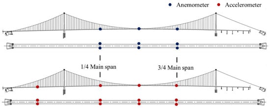 The layout of equipped sensors for wind and girder vibration.