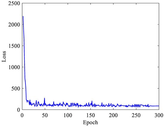 The learning curve of the proposed model is shown in Figure 7. As shown in Figure 7, the training curve is convergent, which indicates that the training process is accomplished. The performance of the trained model on the training set and the testing set is summarized in Table 2. The values of MAE, RMSE and WMAPE indicate that the prediction error is small compared to the amplitude of the acceleration response of the vortex-induced vibration, which validates that the trained model has the capacity to predict the amplitude accurately. Both the PCCs on the training set and the testing set are close to 1, which indicates that the trained model has the capacity to predict the phase accurately.