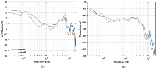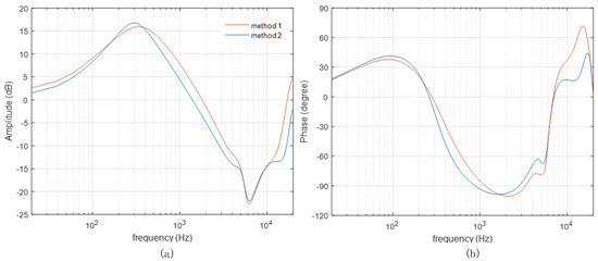 Method 1′s secondary path transfer function’s amplitude being less pronounced in the frequency range of several hundred to three thousand Hertz compared to method 2 necessitates a higher amplitude for the controller to compensate. Method 2 restricts the amplitude beyond 10 kHz to guarantee system stability across various user scenarios and preserves a larger phase margin in the 2 to 5 kHz range to effectively manage the waterbed effect. Next, in addition to the HATS and four subjects on whom the secondary path transfer functions have been tested, four additional subjects are added for the secondary path and noise reduction test, and their parameters are shown in Table 4.