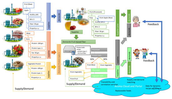 The DFIC is then used by DRs to dynamically connect stakeholders based on the supply demand of foods and raw materials with certain properties.