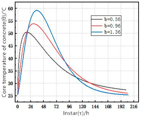- The smaller the influence coefficient b, the lower the maximum temperature that can be reached and the shorter is the time required to reach the maximum temperature. Therefore, the temperature profile of concrete can be adjusted by adjusting the influence coefficient b. The larger the influence coefficient b is, the “steeper” the temperature profile will be, and the smaller the influence coefficient b is, the more “shallow” the temperature profile will be.