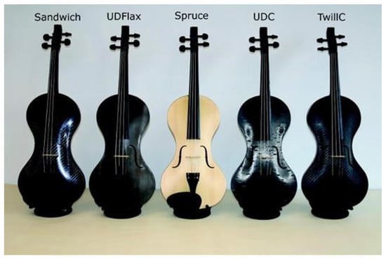 - Dominy, J.; Killingback, P. The development of a carbon fibre violin. In Proceedings of the ICCM 17, Edinburgh, UK, 27–31 July 2009. [Google Scholar]