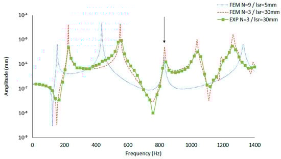 CFRE drum shell amplitude vs. frequency obtained by modal FEM and experimental analysis (lsr stands for the length of the structural reinforcement and N the number of layers). Reproduced under a Creative Commons Attribution 4.0 International License [16]. Copyright 2019, MDPI.