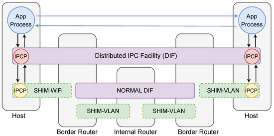 - Smith, L.; Cokely, D.; Bell, H.; Day, J.; Chitkushev, L. Unifying Wi-Fi® and VLANs with the RINA Model. In Proceedings of the 22nd Conference on Innovation in Clouds, Internet and Networks and Workshops, ICIN 2019, Paris, France, 19–21 February 2019; Galis, A., Guillemin, F., Noldus, R., Secci, S., Idzikowski, F., Sayit, M., Eds.; IEEE: Piscataway, NJ, USA, 2019; pp. 43–48. [Google Scholar] [CrossRef]