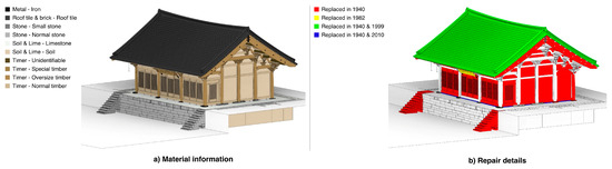 (a) BIM and (b) repair history records of the target heritage building.