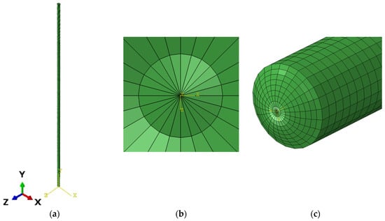 - Definition of nodes and node sets. The node types are defined by *Node and Nset. A total of 15,433 nodes are defined in the entire wellbore model, and the height of wellbore model is 638.084 m. The nodes at the bottom of the wellbore are named “BOTTOM”, and the nodes at the top of the wellbore are named “TOP”.