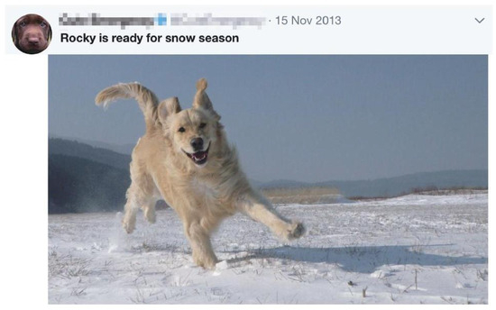 An example of multimodal tweets. In this tweet, “Rocky” is the name of the dog.