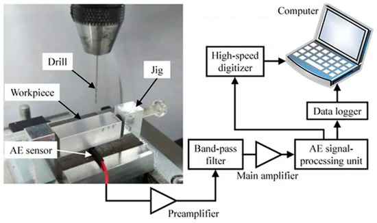 - Hase, A. In Situ Measurement of the Machining State in Small-Diameter Drilling by Acoustic Emission Sensing. Coatings 2024, 14, 193. [Google Scholar] [CrossRef]