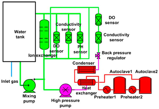 - Li, Y.; Bai, Z.; Ding, S.; Wang, S.; Zhang, F.; Liu, H. An Online Testing System for Electrochemical Corrosion Behavior in Supercritical Water Systems. CN202210499746.6, 29 July 2022. [Google Scholar]