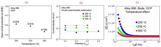 - Yang, J.; Li, Y.; Xu, A.; Fekete, B.; Macdonald, D.D. The electrochemical properties of alloy 690 in simulated pressurized water reactor primary water: Effect of temperature. J. Nucl. Mater. 2019, 518, 305–315. [Google Scholar] [CrossRef]