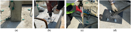 - Joining the steel plate to the reinforced concrete column and beam using chemical anchors.
