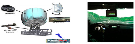 The result of a sickness test from previous studies on the motion system of the same road exceeded the commonly used standard of 75% [17,21]. The simulated roadway environment is displayed using SCANeRTM studio software, and a force feedback system acquires data from the steering wheel, pedals, and gear shift lever to control the simulation.