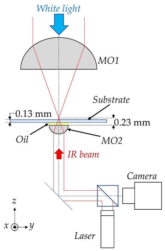 Scheme of a Mach–Zehnder interferometer. (MO1—Long Working Distance Microscope Objective, MO2—Oil Immersion Microscope Objective).