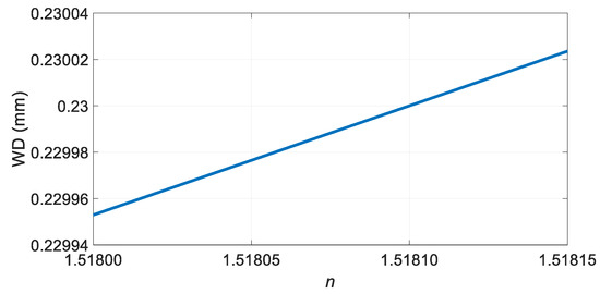 where is the distance from the optical axis to the marginal beam at the output of MO2. Figure 7 plots the behavior between the change in refractive index (x-axis) and the corresponding change in working distance (y-axis), which is equivalent to the change in trap position [21] or to the focus position in a confocal microscope [24].