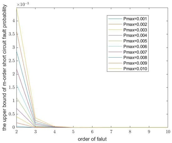 The upper bound of m-order short-circuit fault probability under different conditions.