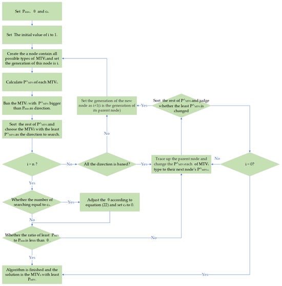 - Set the of the MTVs needed to be optimized as , which is the upper bound of the search. For the search process, the search path with bigger than will not continue to search.