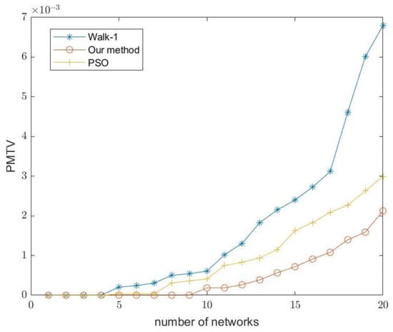 The of the MTVs generated by the three algorithms varies with the number of networks as shown as Figure 9.