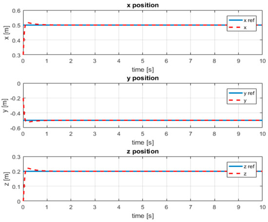 Once the imaginary inputs have been calculated, the set value of the roll and pitch angles, is used in Equation (32). These settings are necessary for the loop that controls the rotation of the Quadrotor.