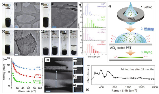 - Hu, G.; Yang, L.; Yang, Z.; Wang, Y.; Jin, X.; Dai, J.; Wu, Q.; Liu, S.; Zhu, X.; Wang, X.; et al. A general ink formulation of 2D crystals for wafer-scale inkjet printing. Sci. Adv. 2020, 6, eaba5029. [Google Scholar] [CrossRef]