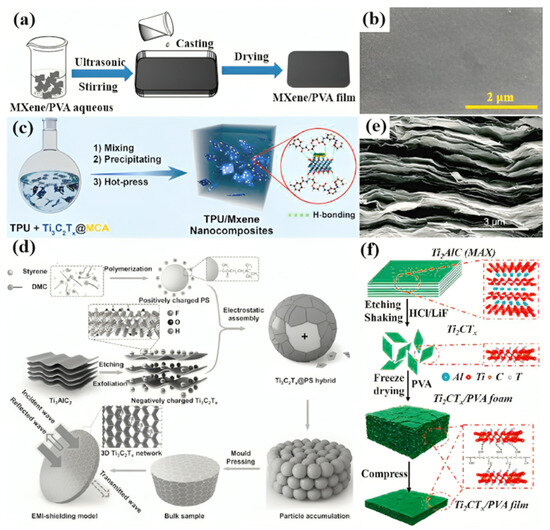 - Sun, R.; Zhang, H.-B.; Liu, J.; Xie, X.; Yang, R.; Li, Y.; Hong, S.; Yu, Z.-Z. Highly Conductive Transition Metal Car-bide/Carbonitride (MXene)@polystyrene Nanocomposites Fabricated by Electrostatic Assembly for Highly Efficient Electro-magnetic Interference Shielding. Adv. Funct. Mater. 2017, 27, 1702807. [Google Scholar] [CrossRef]