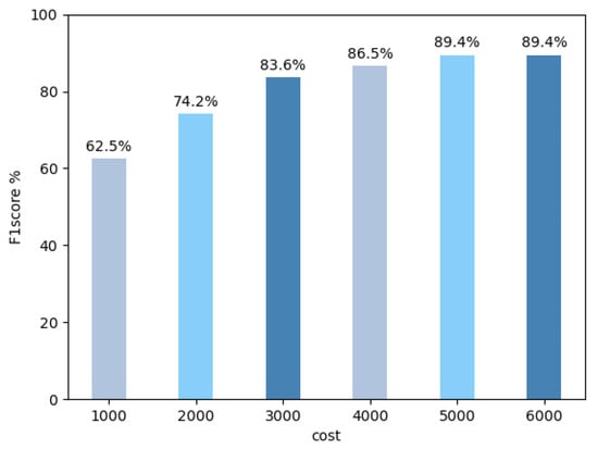 The parameter in this study is crucial, as it represents the minimum expense for one node to reach another. In order to explore the optimal value of , we experimented with different values and observed the F1 score performance of the method, as shown in Figure 13. We found that as the increases to 5000, the performance gradually stabilizes, which is why we chose a of 5000.