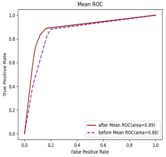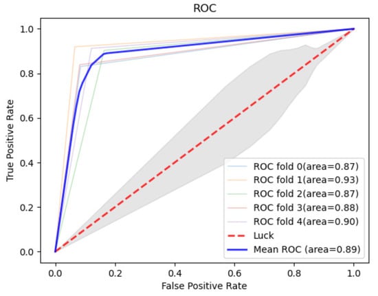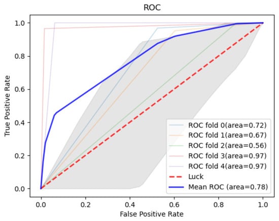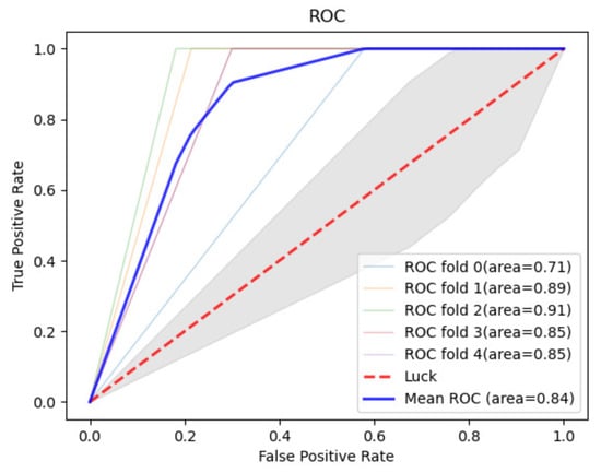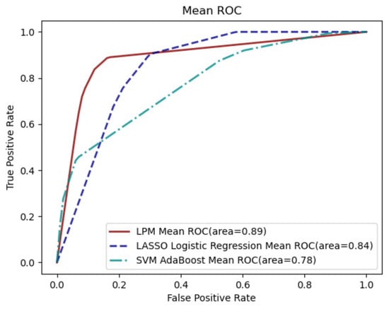 As shown in Figure 14, Figure 15 and Figure 16, our algorithm is more stable compared to the other two algorithms, with a small range of fluctuation in the area under the curve for each fold. In addition, observing Figure 17, the average ROC curve of the LMP algorithm is closer to the upper left corner, and the area under the curve is also the maximum in comparison, which indicates that our algorithm has good results in terms of accuracy as well as stability of the model.