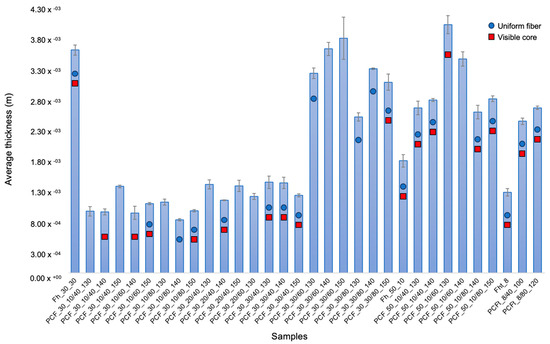 Therefore, the fibre with the highest tension value was PCF_30_30/40_140, which met all the requirements of the previous analyses.