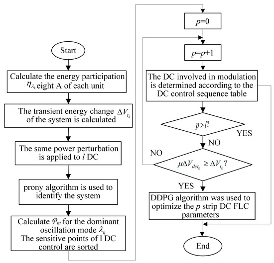 Ultra-low-frequency oscillation (ULFO) is a new problem of frequency stability in asynchronous network back-end power networks. The negative damping provided by hydropower units is the direct cause of ultra-low-frequency oscillation, and DC modulation is an effective means of suppressing system frequency oscillation. Based on the transient energy function and the limitation of DC modulation, this paper analyzes the conditions of suppressing system oscillation by DC modulation from the perspective of energy. The weight of unit energy participation is defined, and the calculation formula of transient oscillation energy in a certain oscillation mode is derived. DC modulation sensitivity is then used to create a DC modulation sequence table based on the Prony identification approach. Ultimately, the DC involved in the modulation is identified using the DC modulation sequence table and the transient oscillation energy, and the Deep Deterministic Policy Gradient (DDPG) algorithm is used to optimize the chosen DC modulation parameters.