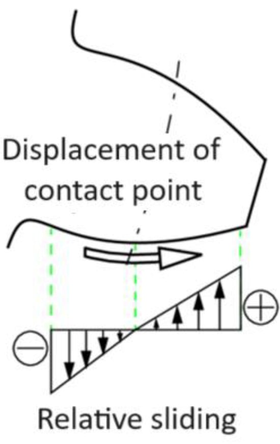 Distribution of relative contact velocity for the spur gear tooth [33].