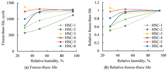 3.4. Relationship between Freeze-Thaw Life of HSC and the RH of Curing Environment