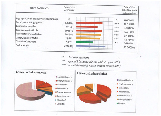 Furthermore, a microbiological test of the periodontal bacterial load was performed on all patients with real-time PCR tests before treatment (T0) and after 7 days (T5) (Figure 1 and Figure 2).